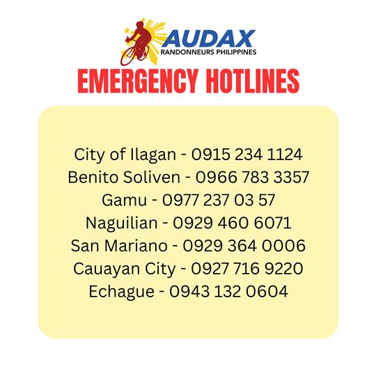 11) To save us time in the Pre-Ride Check-In, kindly read through the waiver form in advance so you just need to sign it on-site. If you can't make the Pre-Ride Check-In, please email (info@audax.ph) us a copy of your notarized waiver form.
